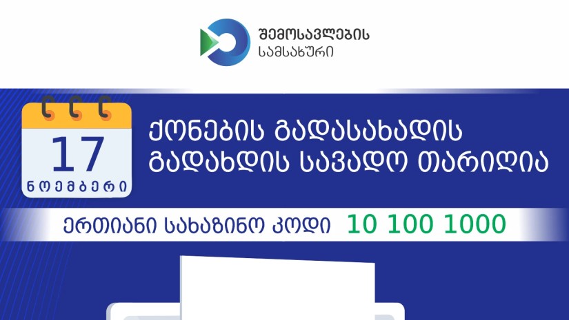 საქართველოს საგადასახადო კოდექსით დადგენილი გადასახადების გადახდისას, მიუხედავად ტერიტორიული ერთეულისა და გადასახადების ქვესახეობისა, მათ შორის ფიზიკური პირის ქონებაზე წლიური გადასახადის გადახდისას, საკმარისია მხოლოდ ერთიანი სახაზინო კოდის - 10 100 1000 მითითება (საგადასახადო დავალებაში არ აღინიშნება გადასახადის განმსაზღვრელი სხვა კოდი).სასურველი ინფორმაციის მისაღებად ასევე, შეგიძლიათ ისარგებლოთ შემოსავლების სამსახურის სერვისით "RS ჩათი" ან დაუკავშირდეთ საინფორმაციო საკონსულტაციო ცენტრს 2 299 299 (R)