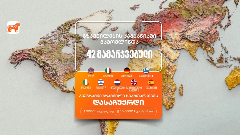 აღნიშნულ კამპანიას სხვადასხვა ქვეყნიდან (აშშ, იტალია, გერმანია, საბერძნეთი, ირლანდია, ისრაელი, ნიდერლანდები, დიდი ბრიტანეთი, ესპანეთი) უკვე 42 გამარჯვებული ჰყავს, რომლებმაც 1,000 ლარიანი პრიზები მიიღეს.როგორ მიიღოთ მონაწილეობა?კამპანიაში ჩართვა მარტივია:უნდა იყოთ საქართველოს ბანკის მომხმარებელი;გაუგზავნოთ გზავნილი საკუთარ თავს;გაანაღდოთ გზავნილი საქართველოს ბანკის მობილბანკში ან ინტერნეტბანკში;ამით გათამაშებაში ავტომატურად ერთვებით.*ინფორმაციისთვის, კამპანიაში მონაწილეობას ვერ შეძლებენ SOLO და Wealth Management (WM) მომხმარებლები.როგორ გროვდება გათამაშების ბილეთები?ყოველი მიღებული 150 ლარი (ან მისი ეკვივალენტი სხვა ვალუტაში) გათამაშების ერთი ბილეთია. ბილეთები კი ავტომატურად გროვდება.მაგალითად, თუ გზავნილით 600 ლარს მიიღებთ და გაანაღდებთ, გათამაშების 4 ბილეთს დააგროვებთ.რა შეგიძლიათ მოიგოთ?ყოველდღე თამაშდება 1,000 ლარი მნიშვნელოვანია იცოდეთ, რომ ყოველდღიური 1,000 ლარის მოგების შანსი გეძლევათ მხოლოდ იმ დღეს, როცა გზავნილს გაანაღდებთ. მაგალითად, ორშაბათს განაღდებული თანხა და მიღებული ბილეთი მხოლოდ ორშაბათის გათამაშებაში მონაწილეობს.20 დეკემბერს კი გათამაშდება მთავარი პრიზი - 10,000 ლარი.ამ ეტაპზე თქვენს მიერ დაგროვებული ყველა ბილეთი გააქტიურდება, რაც მოგების შანსს მაქსიმალურად ზრდის;კამპანიის ფარგლებში შეგიძლიათ ერთხელ მოიგოთ ყოველდღიური პრიზი - 1,000 ლარი და ერთხელ სუპერპრიზი - 10,000 ლარი.რატომ სჯობს გზავნილის განაღდება მობილბანკით?მობილბანკით გზავნილის განაღდება ყოველთვის უფრო კომფორტული და მარტივია.· სახლიდან გაუსვლელად, რამდენიმე წუთში მიიღებთ თანხას;· სარგებლობთ კონვერტაციის ჩვეულებრივზე უკეთესი კურსით;· ხოლო, თუ თქვენი გზავნილი 30,000-ე აღმოჩნდება - თანხას გაიორმაგებთ.გზავნილის კამპანიის შესახებ ყველა საჭირო ინფორმაციას ამ ბმულზე იპოვით.®