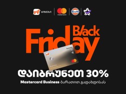საწვავზე 30%-იანი ქეშბექი Gulf-ის ქსელშიMastercard Business Card-ის მფლობელებს შესაძლებლობა აქვთ, 28 ნოემბერს, Black Friday-ზე, Gulf-ის ქსელში საწვავის შეძენისას 30%-იანი ქეშბექი (მაქსიმუმ 100 ლარის ოდენობით) მიიღონ.ქეშბექის მისაღებად საჭიროა გადახდა განხორციელდეს საქართველოს ბანკის ტერმინალზე. ქეშბექი ანგარიშზე 2-3 სამუშაო დღეში დაბრუნდება.იხილეთ მეტი ინფორმაცია შეთავაზების შესახებ ამ ბმულზე.Extra.ge-ზე – ყველა პროდუქტზე 30%-იანი ქეშბექიMastercard Business ბარათით Extra.ge-ზე გადახდისას ბიზნესებს Black Friday-ზე, 28 ნოემბერს, 30%-იანი ქეშბექის (მაქსიმუმ 200 ლარამდე) მიღების შესაძლებლობა აქვთ. შეთავაზება Extra.ge-ის სრულ ასორტიმენტზე მოქმედებს.ქეშბექის მისაღებად საჭიროა საქართველოს ბანკის გადახდის მეთოდს არჩევა. ქეშბექი ანგარიშზე 2-3 სამუშაო დღეში დაბრუნდება.იხილეთ მეტი ინფორმაცია შეთავაზების შესახებ ამ ბმულზე.საქართველოს ბანკი, პარტნიორი ბიზნესების ჩართულობით, მეწარმეებისთვის მუდმივად ქმნის შეთავაზებებს. შეთავაზებები მოიცავს ფასდაკლებებს, ქეშბექებს თუ სპეციალურ პირობებს ტექნოლოგიურ, მარკეტინგულ, საბუღალტრო, ფინანსურ და სხვა სერვისებზე. ამ შეთავაზებების შესახებ სრული ინფორმაციის მისაღებად ეწვიეთ საქართველოს ბანკის ვებგვერდს.(R)
