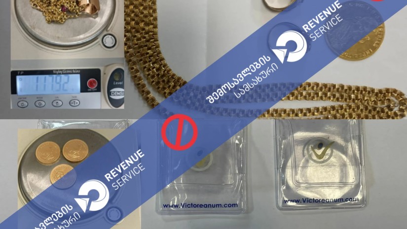ფინანსთა სამინისტროს შემოსავლების სამსახურის მებაჟე ოფიცრებმა, ეჭვის საფუძველზე, უცხო ქვეყნის მოქალაქეების, როგორც ფიზიკური, ასევე კუთვნილი ბარგის დეტალური დათვალიერების შედეგად, არადეკლარირებული ოქროს (საერთო წონით 219.81 გრამი) ნაკეთობები აღმოაჩინეს.არადეკლარირებული საქონლის საერთო საბაჟო ღირებულებამ 77 202 ლარი შეადგინა. სამართალდამრღვევი მოქალაქეების საქმის მასალები შემდგომი რეაგირების მიზნით, ფინანსთა სამინისტროს საგამოძიებო სამსახურს გადაეცა.