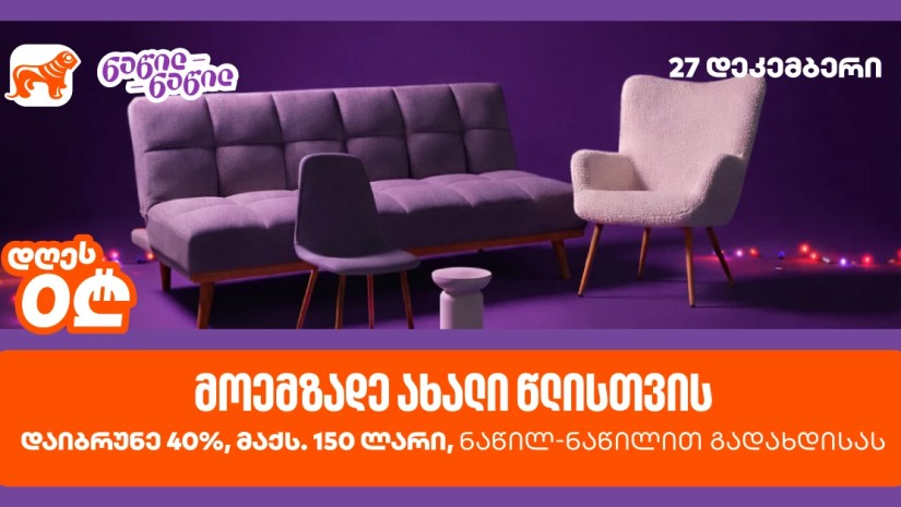 შეთავაზების ფარგლებში, 27 დეკემბერს, ის მომხმარებლები რომლებიც საქართველოს ბანკის ნაწილ-ნაწილ გადახდით ისარგებლებენ, JYSK-ში შოპინგისას 40%-იან ქეშბექს მიიღებენ. (მაქსიმუმ 150 ლარი). ქეშბექი 3 სამუშაო დღეში დაგერიცხებათ.შეთავაზება მოქმედებს JYSK-ის როგორც ფიზიკურ, ისე ონლაინ მაღაზიებში.ინფორმაციისთვის, ნაწილ-ნაწილ საქართველოს ბანკის გადახდის მეთოდია, რომელიც მომხმარებლებს შესაძლებლობას აძლევს ნებისმიერი სასურველი ნივთი იყიდონ ან მიიღონ მომსახურება დღესვე. ღირებულება კი 4 თვეზე თანაბრად გადაანაწილონ ისე, რომ ნივთის ჯამური ფასი არ გაუძვირდეთ. (ეფექტური 0%).ამასთანავე, მომხმარებლებს შეუძლიათ ჯამური თანხის ნაწილი გადაიხადონ, დარჩენილი კი მომდევნო თვეებზე გადაანაწილონ. ამრიგად, ნაწილ-ნაწილ გადაიხდით ზუსტად იმდენს, რასაც ერთიანად გადაიხდიდით.(R)