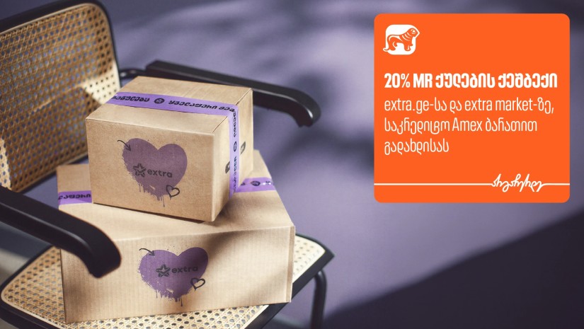 შეთავაზების ფარგლებში, 13 თებერვალს, ის მომხმარებლები, რომლებიც extra.ge-ზე და extra market-ზე შოპინგისას, საქართველოს ბანკის საკრედიტო AmEx ბარათით გადაიხდიან, დახარჯული თანხის 20% MR ქულების სახით დაუბრუნდებათ (ჯამში მაქსიმუმ 150 ლარის MR ქულა).შეთავაზება ვრცელდება extra.ge-სა და extra market-ის სრულ ასორტიმენტზე, როგორც ვებგვერდზე, ასევე მობილურ აპლიკაციაში.ინფორმაციისთვის, extra საქართველოში ყველაზე დიდი ონლაინ მაღაზიაა, რომელიც მომხმარებლებს მრავალფეროვან პროდუქტებსა და კომფორტულ ონლაინ შოპინგის გამოცდილებას სთავაზობს.(R)