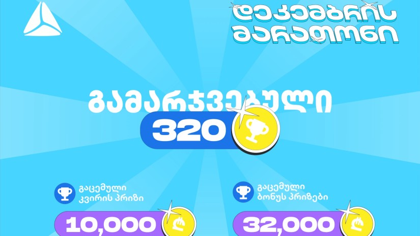 გასული კვირის ყველაზე ხშირად დასმულ შეკითხვებში კი, „რამდენი კლიკი დააგროვე?“ „ამდენი მონეტა რანაირად გაქვს?“ და „რამდენი მეგობარი მოიწვიე?“ - ლიდერობენ.მარათონის პირველი სათამაშო კვირის შემდეგ, 320 გამარჯვებულზე ბონუს პრიზებად უკვე 32 000 ლარი გაიცა. შეგახსენებ, რომ თუ მილიონ მონეტას დააგროვებ, შენც გახდები 100 ლარის მფლობელი.უკვე გამოვლინდა პირველი კვირის ლიდერი და გამარჯვებული, რომელსაც საჩუქრად 10 000 ლარი გადაეცა. მარათონის დასრულებამდე ჯერ 3 კვირაა დარჩენილი; ამიტომ, შენი წარმატების შანსი კი არ იკლებს, პირიქით - მატულობს.გახსოვდეს, რომ ყველაზე მეტი მონეტის დაგროვება მეგობრების მოწვევითაა შესაძლებელი. მოიწვიე მეგობარი, ვისაც თიბისის მობაილბანკი ჯერ არ აქვს და მიიღე 800 მონეტა საჩუქრად.250 000-ზე მეტი აქტიური მოთამაშე, ერთმანეთს კვირისა და მარათონის მთავარი პრიზის მოსაგებად ერკინება. გვიან არასდროსაა, შემოუერთდი დეკემბრის მარათონს ახლავე - შენი შანსი თიბისის მობაილბანკშია.მთავარია გჯეროდეს! (R)