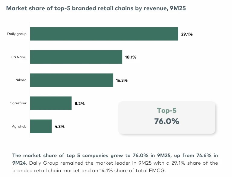 "Daily Group" maintains its leadership in the FMCG market. Recall that in 11/2024, the group was consolidated by merging "Foodmart" (with the brands Spar, Ioli and Kalata), "Daily", "Gvirila Retail" and "Retail Group" (Magniti) into one holding company.