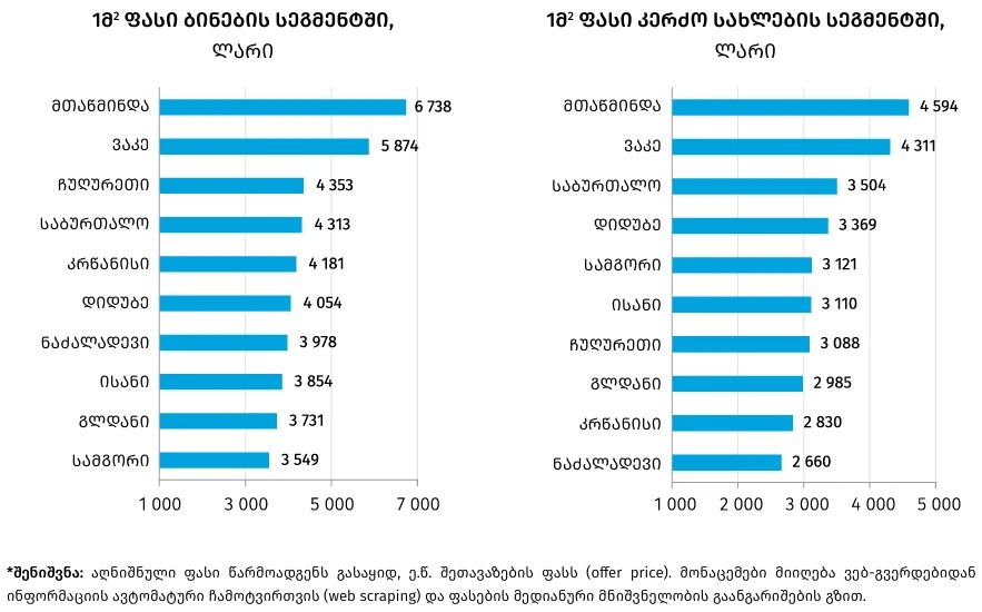 საქსტატის მონაცემებით, 4Q25-თან შედარებით ფასების ზრდა დაფიქსირდა ორივე სეგმენტში - ბინებზე 3.5%-ით, ხოლო კერძო სახლებზე 2.5%-ით.