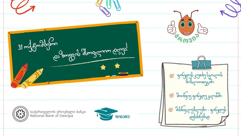დაზოგვის მსოფლიო დღის წლევანდელი აღნიშვნა ლარის 30 წლის იუბილეს ეხმიანება. სწორედ ამიტომ, კამპანიის ფარგლებში დაგეგმილმა პროექტმა „მოიწვიე ფინედუ კლასში“ სტარტი 2 ოქტომბერს, ლარის გადახდის ერთადერთ კანონიერ საშუალებად გამოცხადების დღეს აიღო და მთელი ოქტომბრის განმავლობაში მრავალფეროვანი აქტივობებით გაგრძელდა.