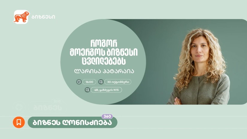 თბილისი (GBC) - საქართველოს ბანკი ბიზნესის მხარდამჭერი ინიციატივების განხორციელებას განაგრძობს. “ბიზნეს 360˚“ პლატფორმის შეხვედრების სერიის ფარგლებში, 30 ოქტომბერს ლარისა პატარაიას ვორკშოპი — „როგორ უნდა მოერგოს ბიზნესი ცვლილებებს: კრიზისიდან სტრატეგიამდე“ გაიმართება.