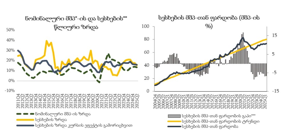 სების ანალიტიკოსების აზრით, 2025 წლის პირველ ნახევარში არსებულმა ძლიერმა ეკონომიკურმა ზრდამ სესხების მშპ-თან ფარდობის გაპის დახურვის ტემპი შეანელა, თუმცა სესხების მშპ-თან ფარდობა განაგრძობს მის გრძელვადიან დონესთან ეტაპობრივ დაახლოებას. შესაბამისად, მიმდინარე ეტაპზე კაპიტალის კონტრციკლური ბუფერის ციკლური კომპონენტის ცვლილების საჭიროება არ იკვეთება. ამასთან, კომერციული ბანკები განაგრძობენ კაპიტალის კონტრციკლური ბუფერის ნეიტრალური კომპონენტის ეტაპობრივ დაგროვებას.