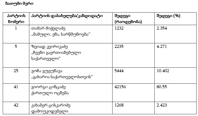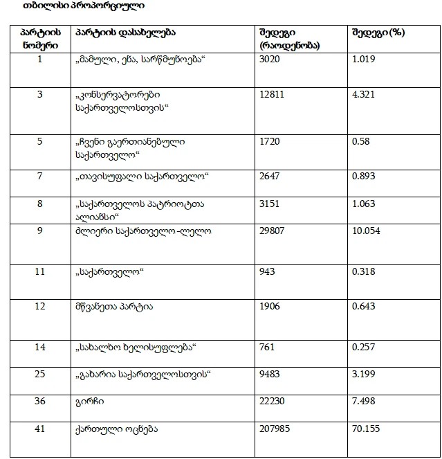 წარმოგიდგენთ პროპორციულ შედეგებს დედაქალაქის შემთხვევაში - 584 საარჩევნო უბნიდან დათვლილია 573 საარჩევნო უბნის შედეგი.