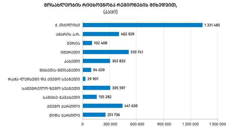 ქვემოთ მოცემულ გრაფიკზე წარმოდგენილია მოსახლეობის განაწილება რეგიონების მიხედვით: