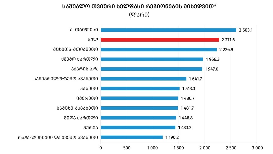 • საფინანსო და სადაზღვევო საქმიანობები – 3 526 ლარი (გაიზარდა 10.7%-ით)