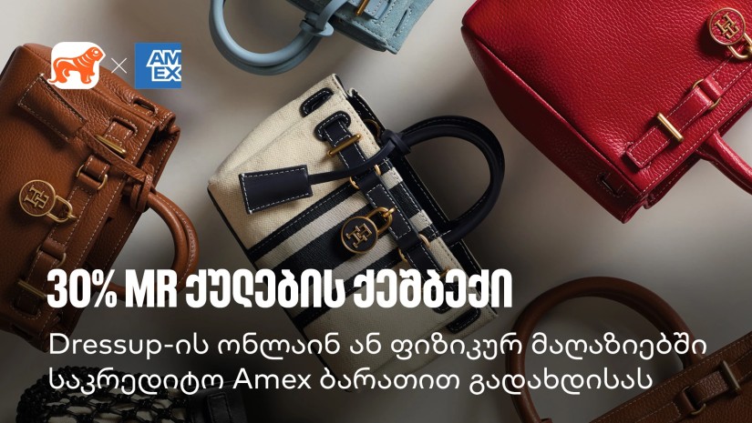 30-31 მარტს,Dressup-ის ფიზიკურ მაღაზიებში ან ონლაინ, dressup.ge-ზე შოპინგისას საკრედიტო Amex ბარათის მფლობელები 30%-იან ქეშბექს მიიღებენ MR ქულების სახით. შეთავაზების ფარგლებში, ერთ მომხმარებელზე შესაძლებელია მაქსიმუმ 200 ლარის MR ქულის მიღება.ინფორმაციისთვის, ფილიალში გადახდა შესაძლებელია როგორც Wallet-ში დამატებული, ისე ფიზიკური ბარათით, ხოლო ონლაინ გადახდისას მხოლოდ ბარათის მონაცემების შეყვანის შემთხვევაში.შეთავაზებით სარგებლობისთვის აუცილებელია გადახდის განხორციელება საქართველოს ბანკის ტერმინალზე. შეთავაზება არ ვრცელდება სასაჩუქრე ვაუჩერებზე.Dressup Group 1994 წლიდან ოპერირებს საქართველოში და წარმოადგენს ტანსაცმლის, ფეხსაცმლისა და აქსესუარების ერთ-ერთ წამყვან რითეილერს. კომპანია აერთიანებს 80-ზე მეტ მაღაზიას ოთხ ქალაქში და მომხმარებლებს სთავაზობს მსოფლიოს წამყვანი ბრენდების უახლეს კოლექციებს. (R)