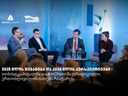 სავაჭრო რეჟიმების ცვლილებები, ხელოვნური ინტელექტის სწრაფი განვითარება და მსოფლიოში მშვიდობის დამყარების მცდელობები - ის ფაქტორებია, რომლებიც დღეს გლობალურ ეკონომიკას განსაზღვრავს, კერძო სექტორს კი მკვეთრი ცვლილებებისკენ უბიძგებს.“როგორც თიბისისა და ამერიკის სავაჭრო პალატის მმართველი გუნდის წევრი, მოხარული ვარ, რომ უკვე მეოთხედ ვმასპინძლობთ ერთობლივ ღონისძიებას, რომელსაც AmCham-ის წევრები და აშშ-ის საელჩოს წარმომადგენლები ესწრებიან. თიბისისთვის, როგორც ბიზნესის N1 მხარდამჭერისთვის, მნიშვნელოვანია, რომ ჩვენს პარტნიორებს სანდო და დროული ინფორმაცია პირველებმა მივაწოდოთ. მსგავსი ღონისძიებებით ბიზნესს საშუალებას ვაძლევთ, დაინახოს ფართო სურათი; გააანალიზოს გამოწვევები და შესაძლებლობები; და რაც მთავარია, დაიწყოს ადაპტაცია ახალ რეალობასთან”, - გიორგი თხელიძე, თიბისის გენერალური დირექტორის მოადგილე.„მსოფლიო ეკონომიკის განვითარება დღეს საკმაოდ რთული დინამიკით გამოირჩევა და მოხარული ვარ, რომ ჩვენ - ამერიკის სავაჭრო პალატამ და თიბისიმ - ერთად ჩამოვაყალიბეთ მოქნილი ქვე-პლატფორმა, სადაც კერძო სექტორი იღებს ყველაზე ობიექტურ, ხარისხიან და სტრატეგიულად მნიშვნელოვან ინფორმაციას, რაც შემდგომში მათ ეხმარებათ, იყვნენ გრძელვადიანად კონკურენტუნარიანები, ეფექტიანად მართონ რისკები და მოერგონ ცვლილებებს. საბოლოო ჯამში, ეს ყველაფერი, რა თქმა უნდა, ქვეყნის ეკონომიკის გაჯანსაღებას ემსახურება“, - ირაკლი ბაიდაშვილი, ამერიკის სავაჭრო პალატის პრეზიდენტი.