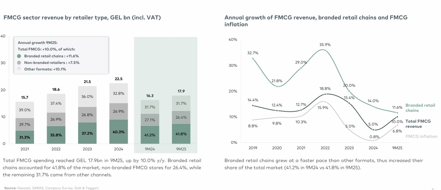 The profitability of branded chains is mainly due to regional expansion and sales growth of existing stores. The average revenue of 1 store in Tbilisi is 2 million GEL, in the region it is 1.6 million GEL.