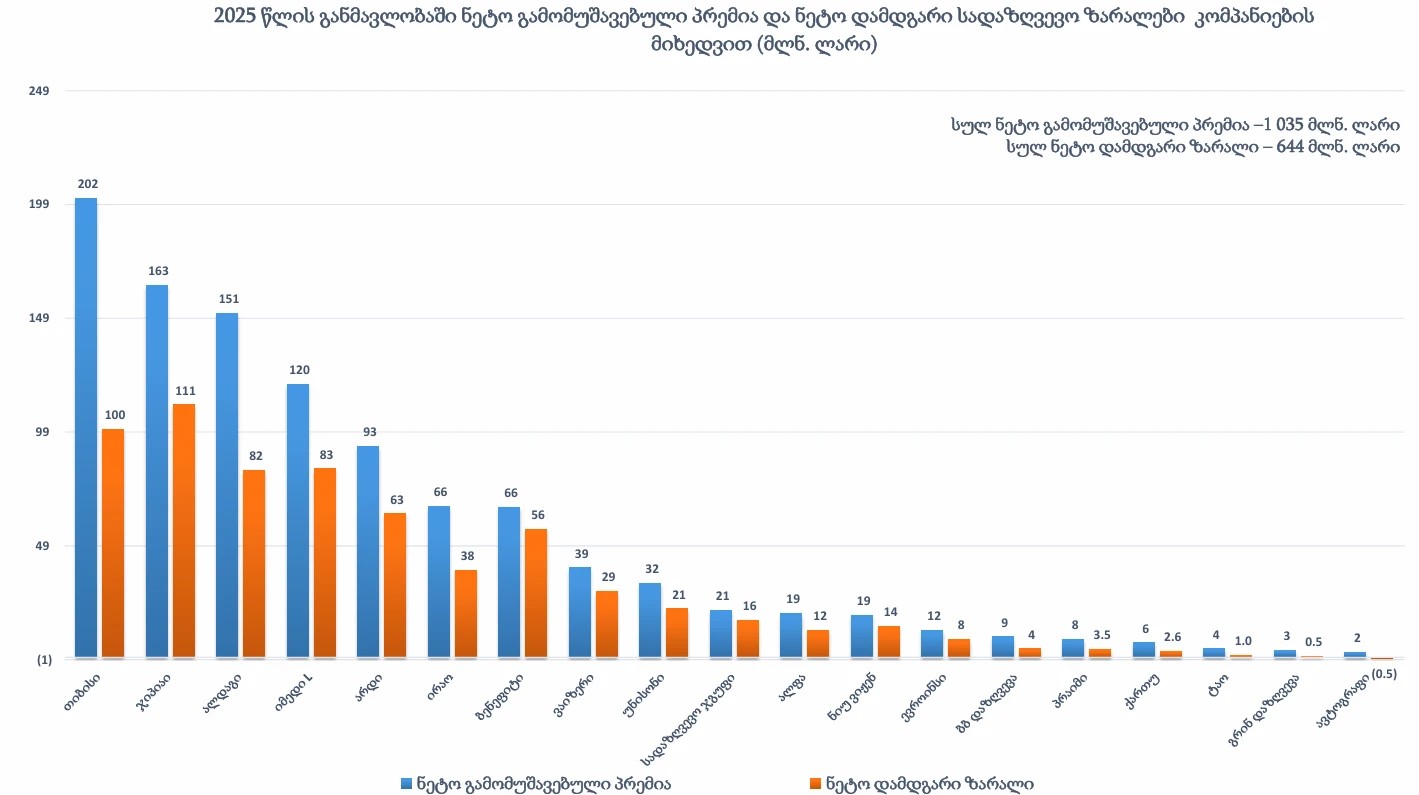 დოკუმენტის თანახმად, 2025 წლის 31 დეკემბრის მდგომარეობით, საქართველოში სულ 19 სადაზღვევო კომპანიაა რეგისტრირებული. ყველა მათგანი ფლობს როგორც სიცოცხლის, ისე არასიცოცხლის დაზღვევის ლიცენზიას.