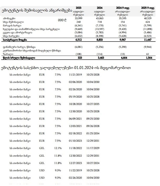 2025 წლიდან სტრუქტურულად რეორგანიზებული ლოპოტას (ლოპოტას, ლოპოტა ტურს სერვისის და ლოპოტა ინვესტმენტის შერწყმა) ფინანსური მდგომარეობა :