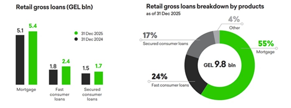 თბილისი (GBC) - 2025 წელს TBC-ის საცალო სესხების პორტფელი წლიურად 12%-ით გაიზარდა. ზრდა ძირითადად განპირობებული იყო სწრაფი სამომხმარებლო სესხებით (FCL), რომლებიც 33%-ით გაიზარდა. ამავე პერიოდში საცალო დეპოზიტები 16%-ით გაიზარდა წლიურად, რასაც ხელი შეუწყო დეპოზიტის გახსნის განახლებული ციფრულმა პროცესმა, მიკროდაზოგვის ახალმა ფუნქციებმა, გაუმჯობესებულმა ავტომატიზებულმა მარკეტინგმა და მონაცემებზე დაფუძნებულმა ინსტრუმენტებმა.