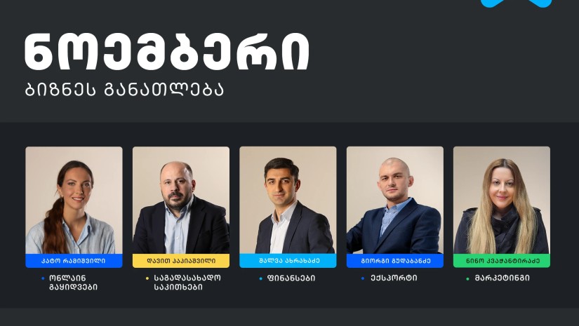• პირველი ტრენინგი, ონლაინ ფორმატში, 11 და 13 ნოემბერს გაიმართება და ის ელექტრონული კომერციის თემატიკას დაეთმობა. ტრენინგს ელექტრონული კომერციის სპეციალისტი, კატო რამიშვილი ჩაატარებს.