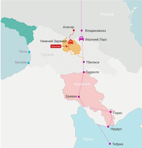 კრემლის ანალიტიკოსების იდეის თანახმად, ახალმა მაგისტრალმა რაჭის ტერიტორიაც, კერძოდ სოფელი გლოლა და ონი უნდა გაიაროს, შემდეგ ქვაისაში ჩავიდეთ, ცხინვალის და თბილისის გავლით სადახლომდე, შემდეგ სომხეთში და აქედან კი ირანში უნდა გაგრძელდეს.