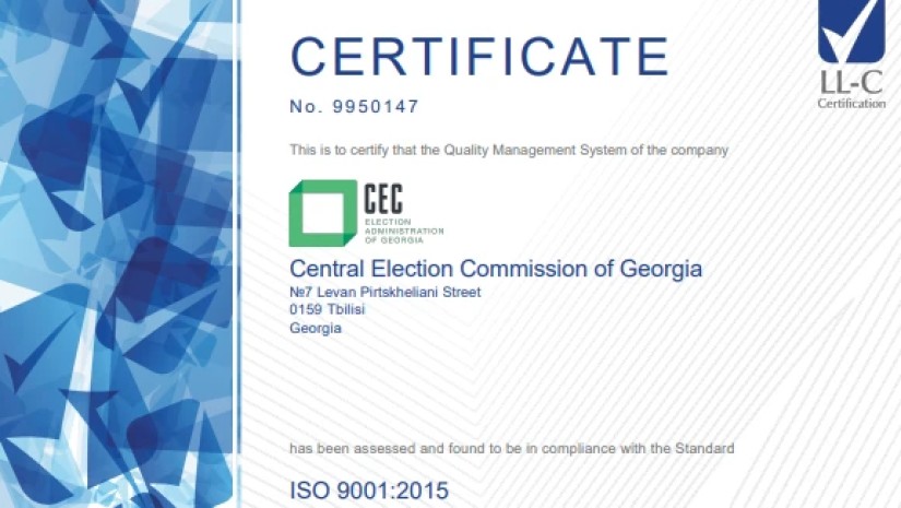 ცენტრალურმა საარჩევნო კომისიამ ISO 9001:2015-ის ფარგლებში საერთაშორისო აუდიტი პირველად 2019 წელს გაიარა.