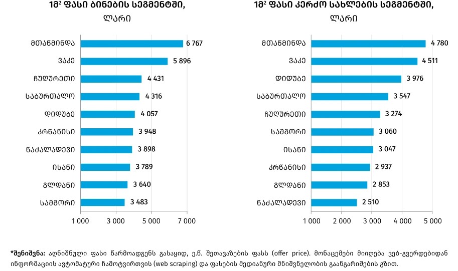 2024 წლის მესამე კვარტალთან შედარებით ფასების ზრდა დაფიქსირდა ორივე სეგმენტში - ბინებზე 6.9%-ით, ხოლო კერძო სახლებზე 7.2%-ით.